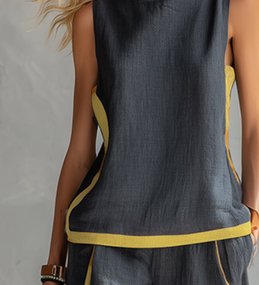 Set elegant fără mâneci cu Galbener pătrat