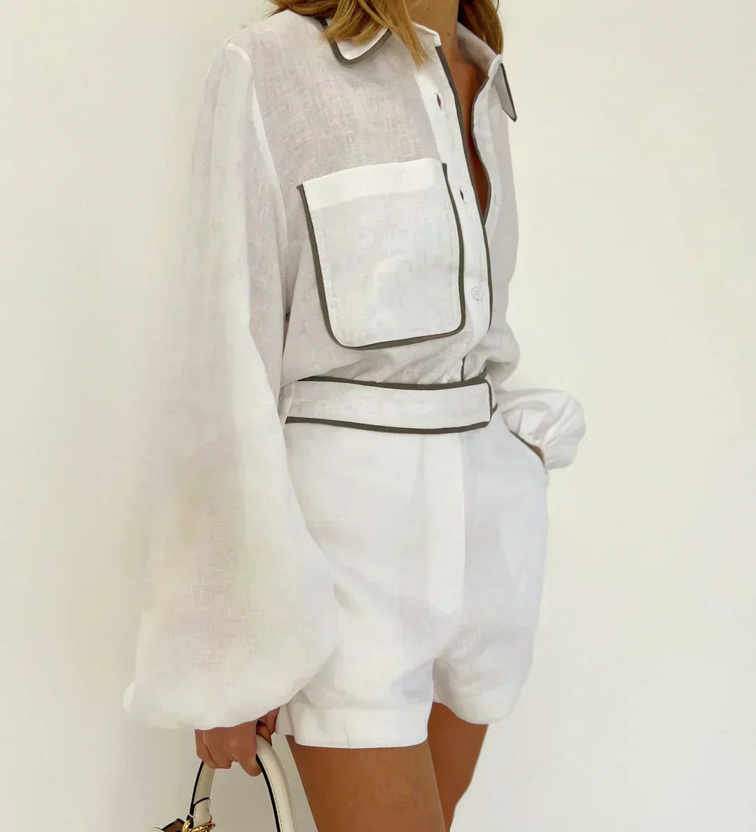 Maria – Set format din top și pantaloni largi din bumbac și in, stil minimalist pentru femei