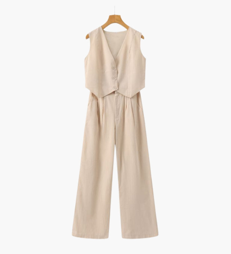 Jessica - Set Vestă cu Nasturi și Pantaloni Largi