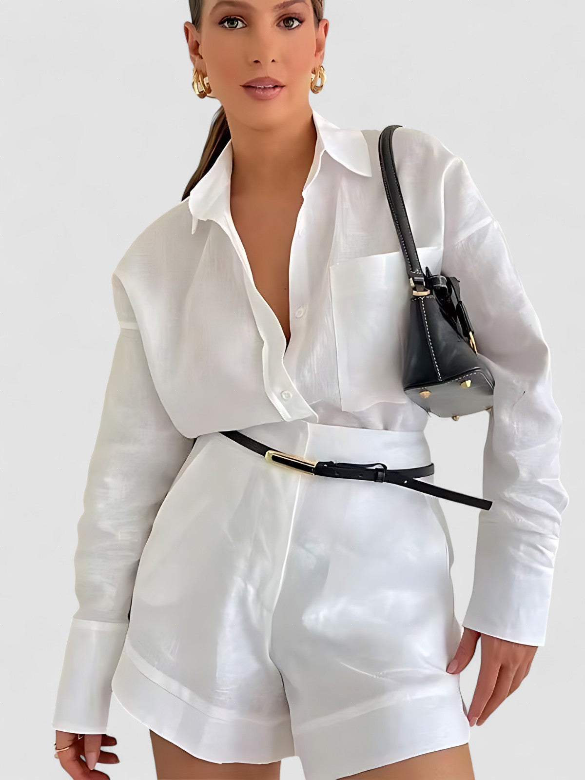 Tip de croi: Croi lejer pentru cămașă, cu un croi ajustat pentru șort, pentru un aspect echilibrat și stilat.