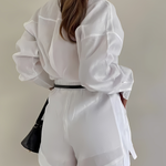 Design: Un set lejer format din două piese, cu o cămașă cu butoane și Galbener structurat, asociată cu un șort cu talie înaltă asortat. Designul fără efort îmbină confortul cu o eleganță subtilă.