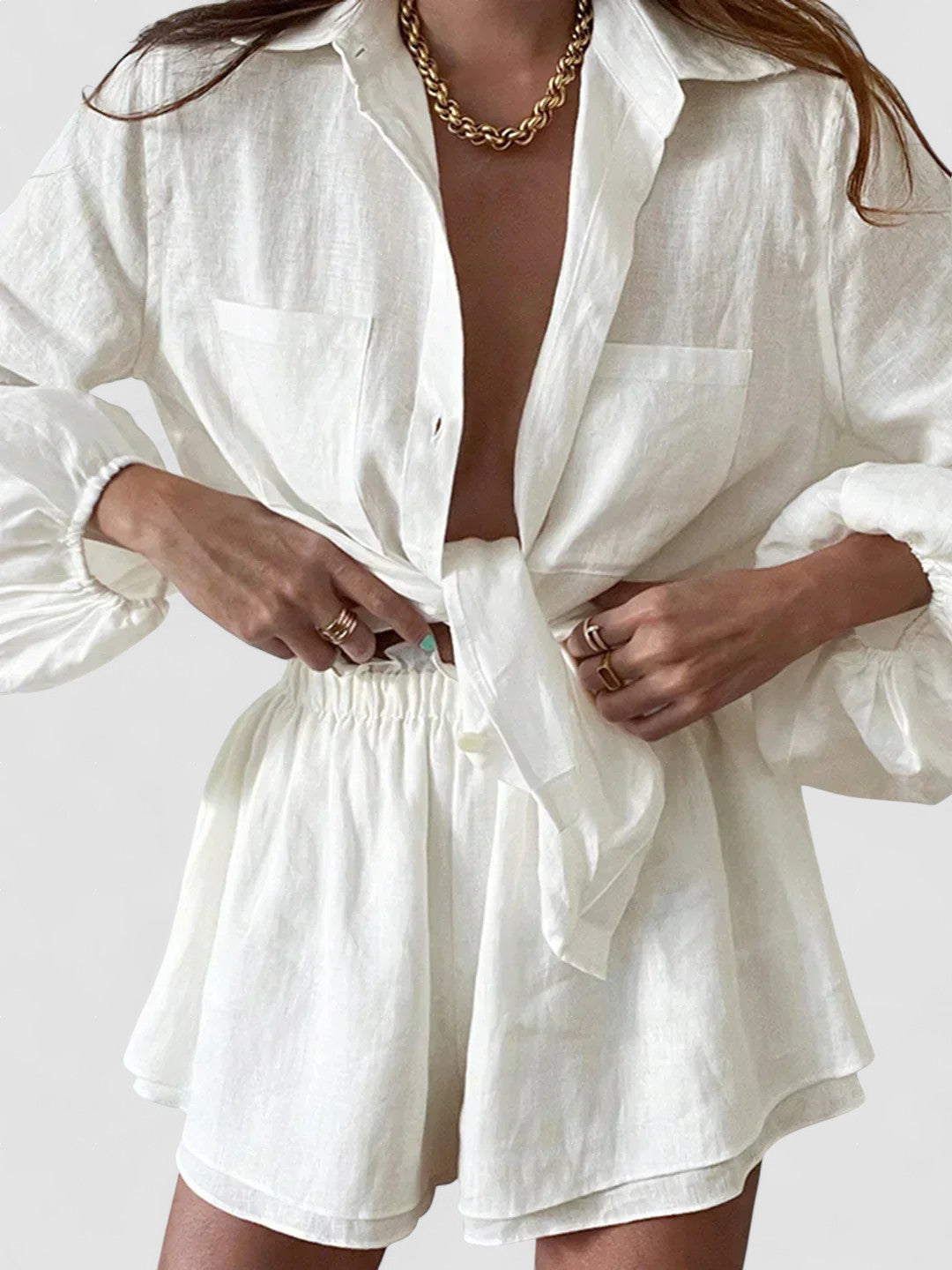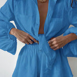 Design: Acest set prezintă un design elegant din două piese cu pantaloni scurți căptușiți dublu, oferind un aspect chic și coordonat.