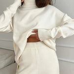 Set tricotat cu guler înalt de culoare solidă
