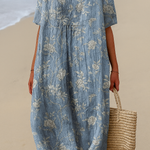 L'abito Olivia Lagoon è una fresca combinazione di comfort e stile senza tempo. Il tessuto morbido e fluente si adagia magnificamente sul Culoarepo, mentre la sottile stampa floreale aggiunge un tocco di eleganza naturale. La vestibilità rilassata e il scollo a V creano una silhouette lusinghiera e ariosa, perfetta per le giornate calde. Che tu stia passeggiando lungo la spiaggia o godendo di un incontro informale, questo abito offre sia facilità che bellezza.