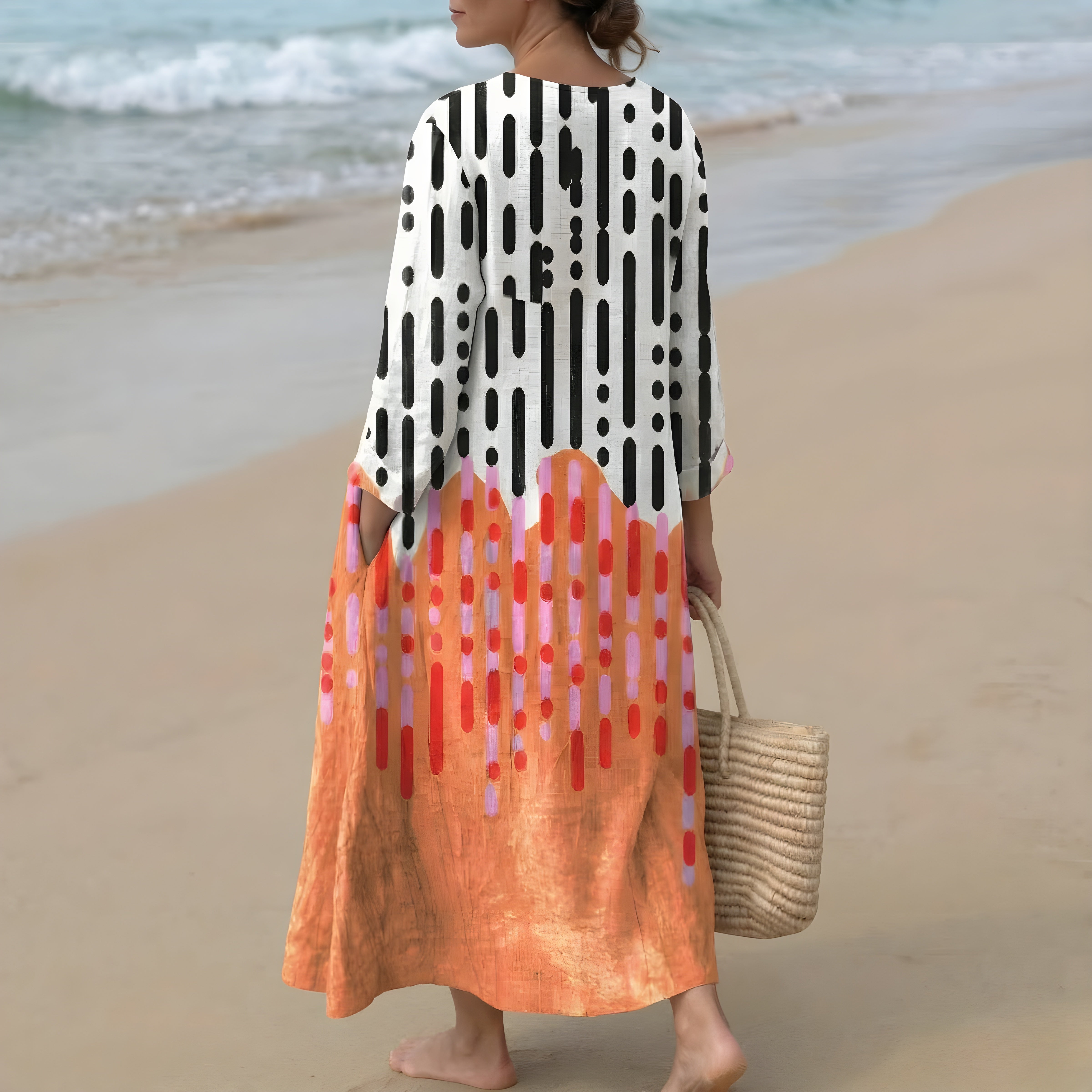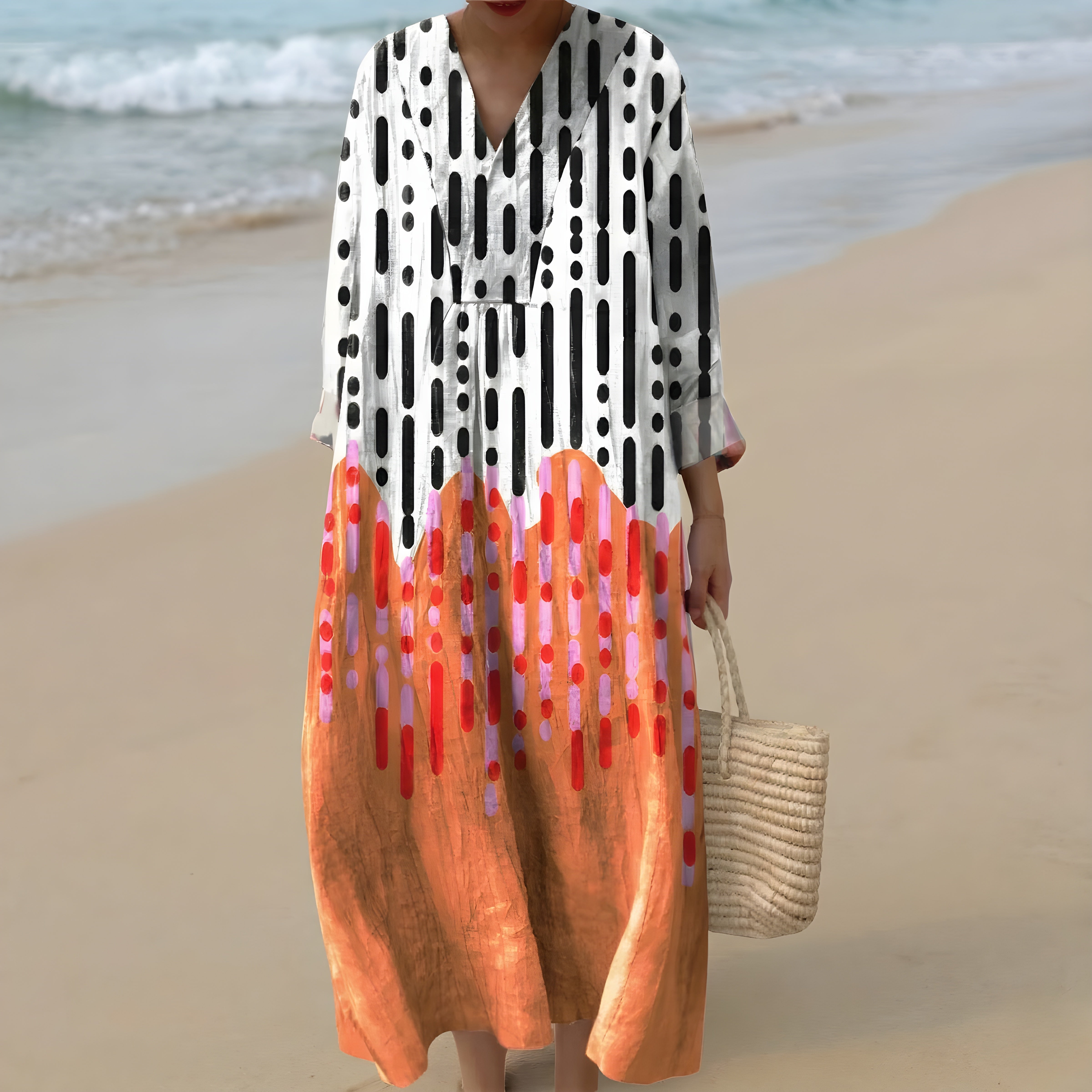 La Tunica Geometrica Lily offre un mix unico di design contemporaneo ed eleganza rilassata. La sua stampa geometrica audace crea un impatto visivo con Culoarei vivaci e forme dinamiche, mentre la silhouette fluida della tunica garantisce comfort e facilità. Il tessuto leggero si drappeggia con grazia, rendendola un'opzione perfetta per le giornate più calde. Indossata in modo informale con sandali o abbellita con accessori, questa tunica è un pezzo versatile che aggiunge un tocco creativo e sicuro a qualsiasi outfit.