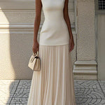 ✓ Eleganță subtilă și modernă – Linie fără mâneci și pliuri care flatează orice siluetă