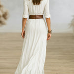 Karolína – Rochie lungă înfășurată cu curea și manșete plisate